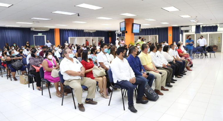 Hicieron uso de la palabra la subsecretaria de Educación Básica, Luz María Abuxapqui González y Cindy Livier Yah May, presidenta de la Comisión de Educación, Cultura y Deporte, en representación de la presidenta municipal de Othón P. Blanco, Yensunni Martínez Hernández.