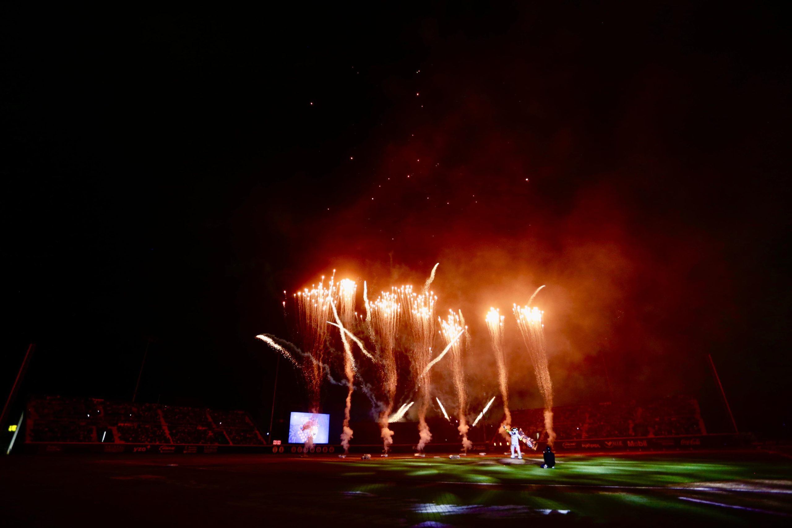 La fiesta previa estuvo amenizada por la banda de Lorenzo Méndez y un espectacular show folklórico y por su puesto los juegos artificiales que iluminaron el estadio Beto Avila.