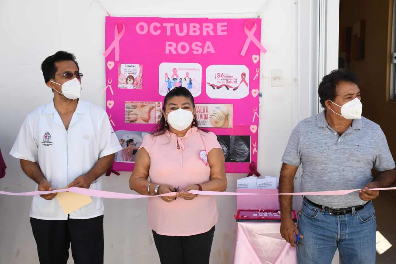 Lázaro Cárdenas, Q. Roo, Viernes 16 de Octubre del 2020, poderycrítica.- En representación de la Presidenta del DIF municipal Sra. Marisol Escalante de Mena, la directora de esta dependencia, Telma Cervera Villanueva, estuvo presente en la inauguración de la campaña de concientización sobre el cáncer de mama 2020 en el hospital integral de Kantunilkín.