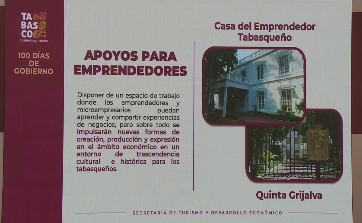PODER Y CRÍTICA | REDACCIÓN | Talina Ferrer Cadenas, subsecretaria de Promoción, Atracción e Inversiones de la Secretaría de Desarrollo, anunció la apertura de la Casa del Emprendedor Tabasqueño dentro de las instalaciones de la Quinta Grijalva, en colaboración con la Secretaría de Cultura. Este espacio busca brindar apoyo a emprendedores y microempresarios del estado.
