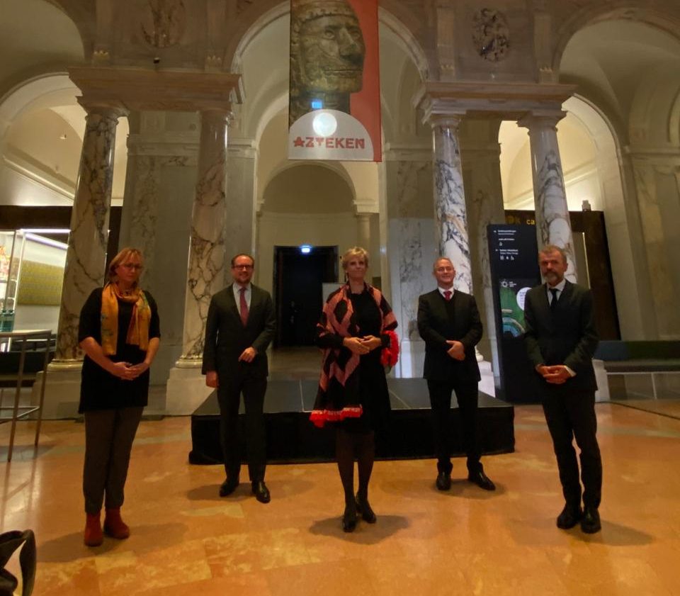 La directora general de la Asociación de Museos KHM (Kunsthistorisches Museum), Sabine Haag, y el titular del Museo Etnográfico de Viena, Christian Schicklgruber, dieron la bienvenida a esta segunda parada de aztecas en su periplo europeo. Acto seguido, el ministro Federal de Asuntos Europeos e Internacionales de la República de Austria, Alexander Schallenberg, y el embajador de México en Austria, Luis Javier Campuzano Piña, ofrecieron un breve discurso en el que refrendaron los lazos de amistad y cooperación entre ambas naciones.