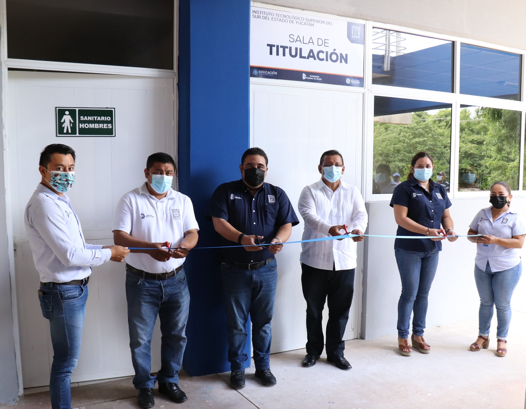 Mérida, Yucatán, Martes 22 de Junio de 2021, poderycrítica.- Esta mañana, el Mtro. José Enrique Carrillo Duarte en compañía de los subdirectores del Instituto Tecnológico Superior del Sur del Estado de Yucatán realizaron el corte de listo inaugural de la nueva sala de titulación.