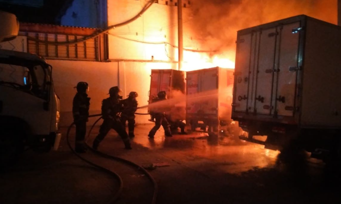Debido a la magnitud del incendio, y a que éste amenazaba con expandirse hacia otros camiones, varias unidades del Cuerpo de Bomberos arribaron al lugar, y minutos después hicieron lo mismo pipas de servicio privado, en apoyo.