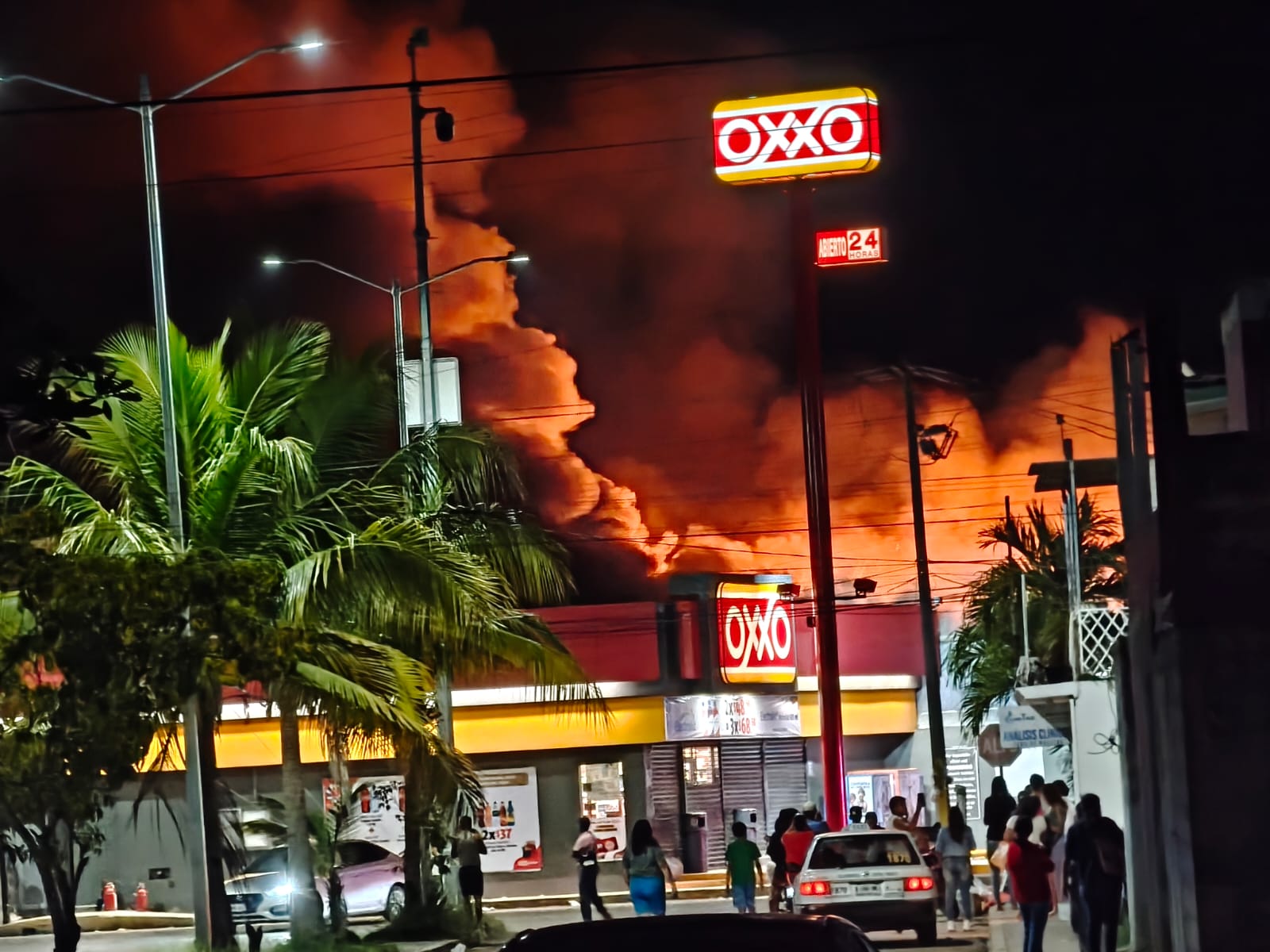 PODER Y CRÍTICA | REDACCIÓN | La noche del domingo se registró un incendio que destruyó una tienda ‘Neto’ en el fraccionamiento Lagunas de Villahermosa.