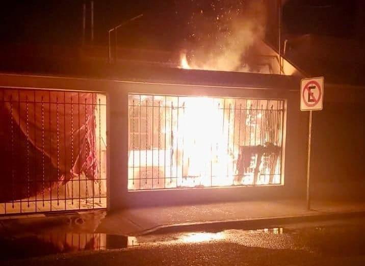 PODER Y CRÍTICA | REDACCIÓN |  La madrugada de este miércoles, un incendio se originó en una vivienda deshabitada ubicada en la calle Lino Merino esquina con Eusebio Castillo, en la colonia Centro. El incidente se debió a la quema de un transformador, que provocó la extensión del fuego hasta la casa cercana.