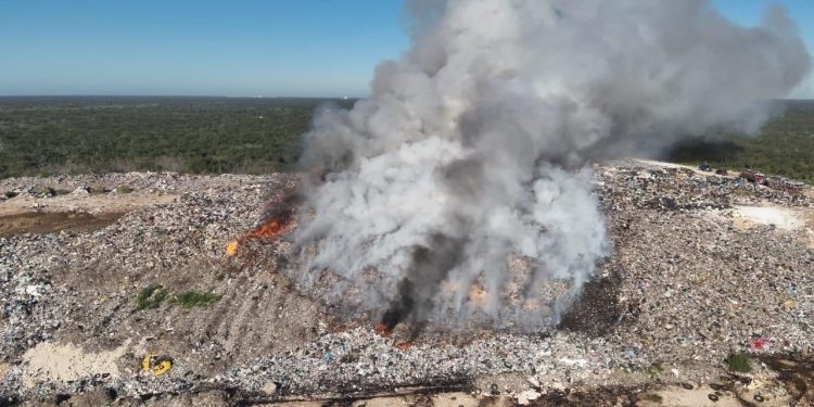 Un incendio de gran magnitud se desató en el relleno sanitario de Ciudad del Carmen, ubicado en el kilómetro 22 de la carretera Carmen-Puerto Real, afectando más del 50% de una de las dos celdas del sitio. A pesar de los esfuerzos de las brigadas de emergencia y la empresa operadora del lugar, Servicios, Operaciones y Suministros de la Isla (SOS), el fuego sigue activo y ha generado una densa cortina de humo visible desde distintos puntos de la isla.