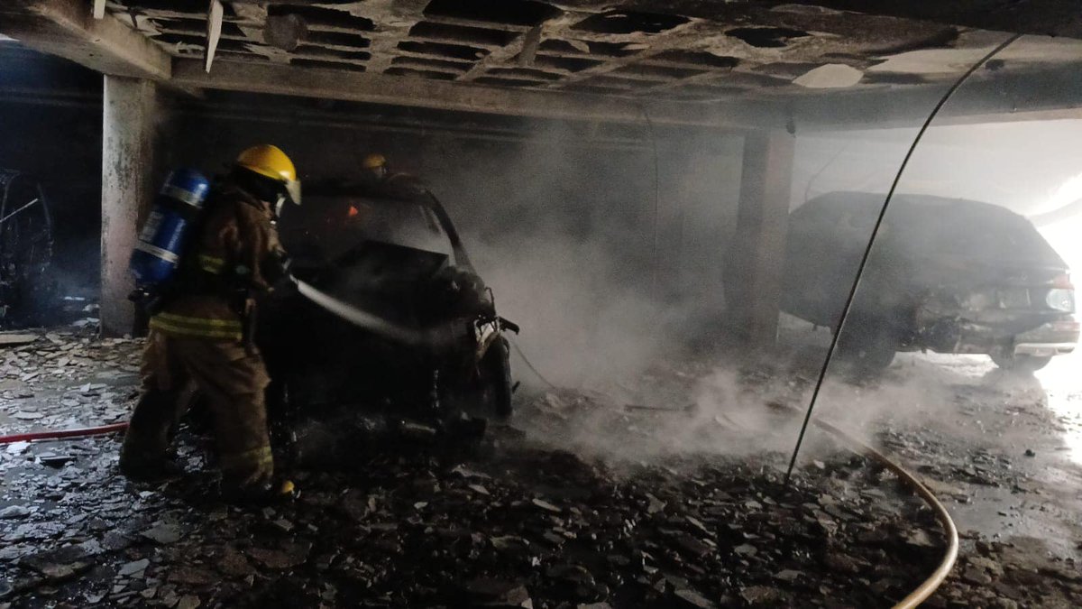 PODER Y CRÍTICA | REDACCIÓN | Un incendio registrado la tarde de este miércoles en el estacionamiento de la Torre 104, ubicada en la calle Abogados de la colonia José Narciso Rovirosa, ha dejado como saldo tres vehículos calcinados y la evacuación de 10 personas del inmueble.