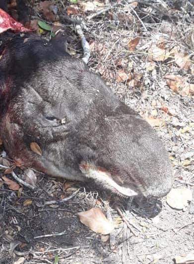 «Ls principal causa de los 42 incendios forestales que se han registrado en Quintana Roo es la cacería furtiva con 14 provocados. Circula en las redes sociales esta imagen de un hermoso espécimen de tapir que fue presa de cazadores furtivos; muchas especies no logran escapar de las llamas y éstas terminan incineradas por la inconsciencia de algunas personas», señaló.