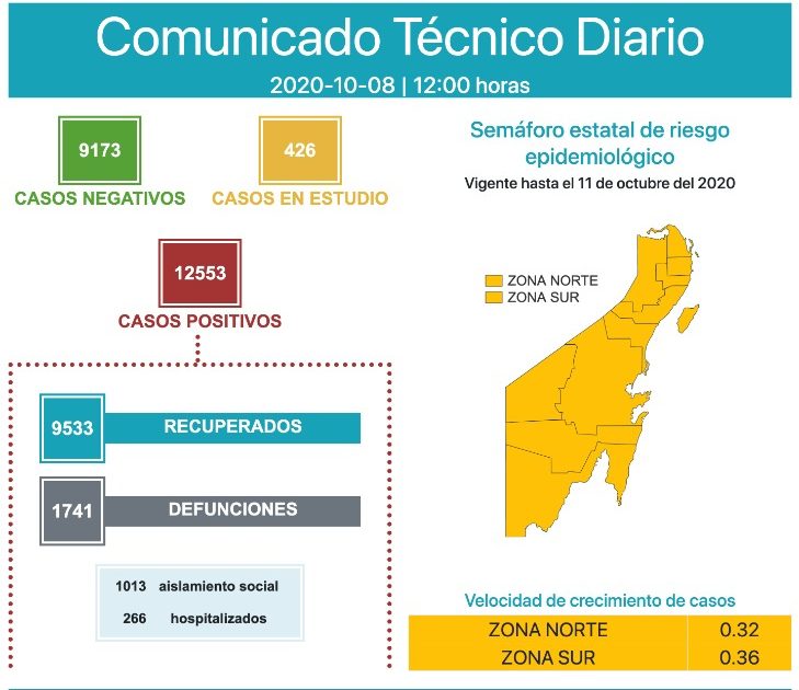 En este sentido refirió que a partir de este 8 de octubre “hemos incorporado la nueva metodología nacional para la definición de casos positivos a Covid-19. Por lo que en Quintana Roo verán un aumento muy notable en el reporte diario, específicamente de 300 casos en total”.