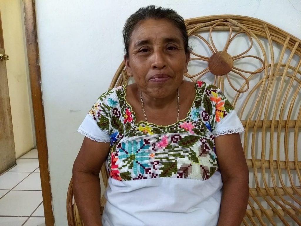 Caamal Moo es campesina y cultiva diversos productos, tales como maíz, calabaza, tomate, chaya, frijoles tiernos, entre otros productos que, de acuerdo a la temporada de cosecha, sale a la cabecera municipal para vender.