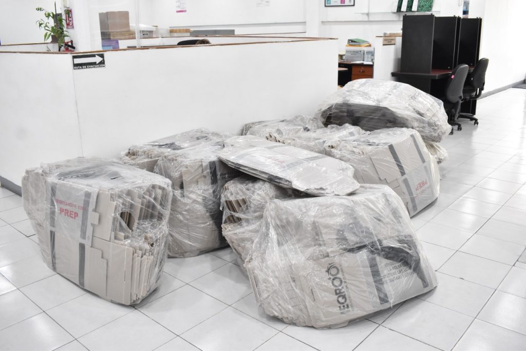 Entre el material y documentación destaca: urnas, mamparas, boletas de gubernatura y diputaciones, actas de la jornada electoral, cuadernillos para hacer las operaciones, actas de escrutinio y cómputo gubernatura y diputaciones, hojas de incidentes, guías para la clasificación de los votos gubernatura y diputaciones, entre otros.