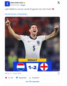Inglaterra consigue su pase a la Final de la Eurocopa 2024