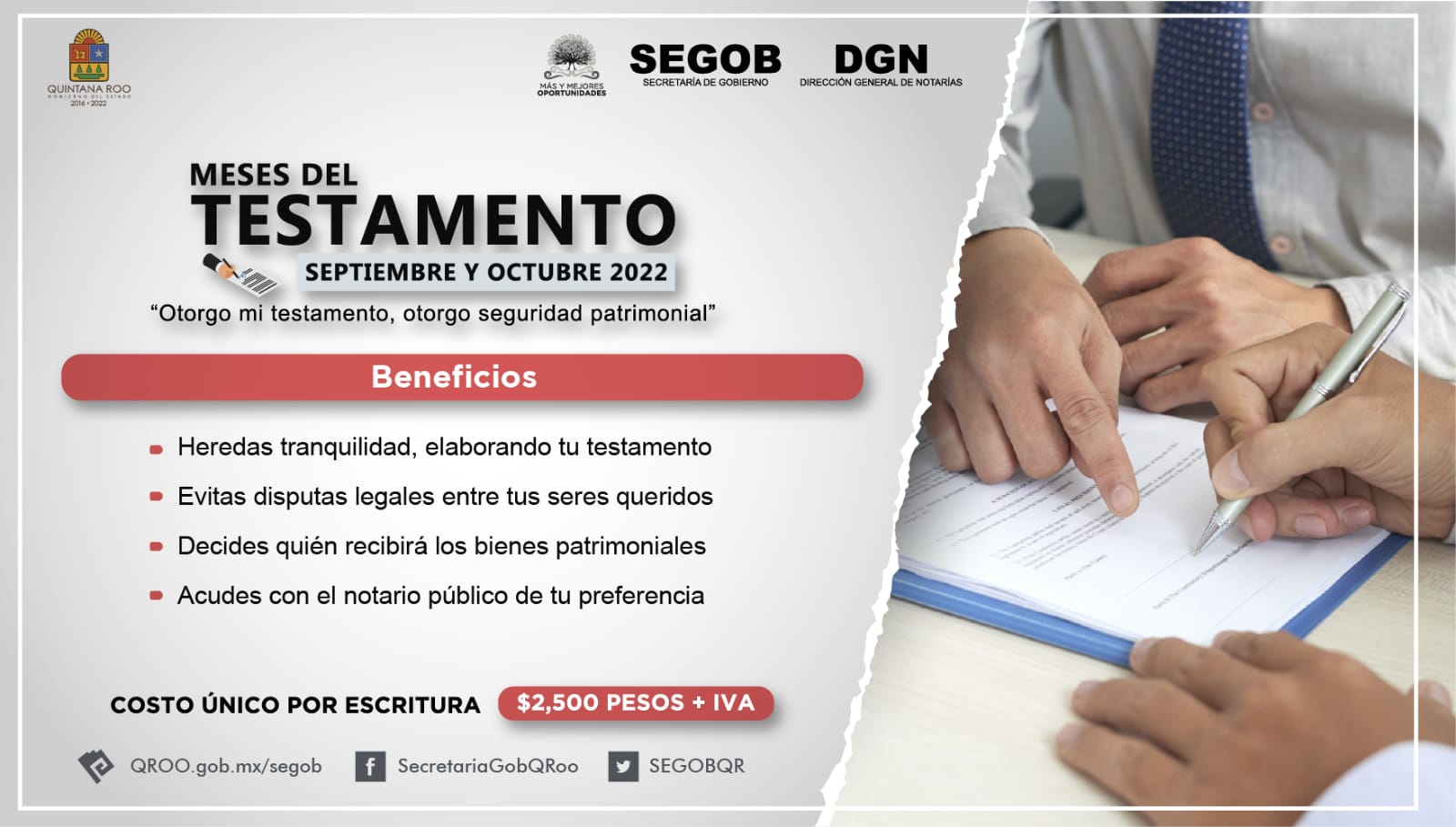 El costo por testamento durante la vigencia de la campaña, según el acuerdo publicado en el Periódico Oficial del Estado, será de dos mil 500 pesos más IVA, en beneficio de ciudadanos mexicanos residentes en la entidad.