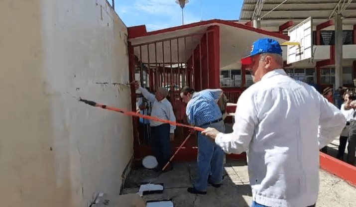 El mandatario acudió a la escuela primaria “Guadalupe Martínez de C.”, ubicada en la calle Ceiba s/n, colonia Primero de Mayo, donde en compañía del titular de la Secretaría de Educación (Setab), Luis Rodrigo Marín Figueroa, dio el brochazo de inicio de limpieza de planteles, que incluye lavado de aulas, pintura y que no haya basura en instalaciones.