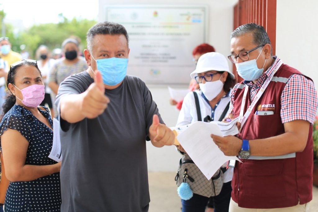 Playa del Carmen, Quintana Roo, martes 08 de junio del 2021, poderycritica.-Con una gran respuesta por parte de la ciudadanía, este martes dio comienzo la aplicación de la segunda dosis de la vacuna Pfizer contra la Covid-19 a adultos de 50 a 59 años, la cual es realizada por la Secretaría del Bienestar, con el apoyo logístico del gobierno de Solidaridad, en los módulos ubicados en CENALTUR, en la Unidad Deportiva Colosio y en la secundaria Luz María Zaleta en Villas del Sol.