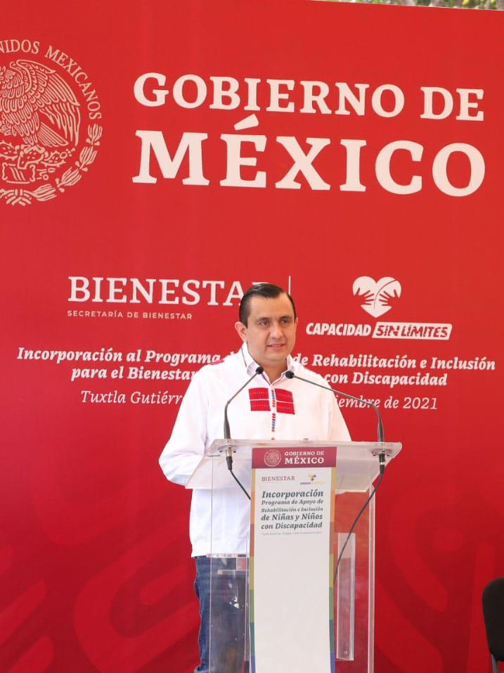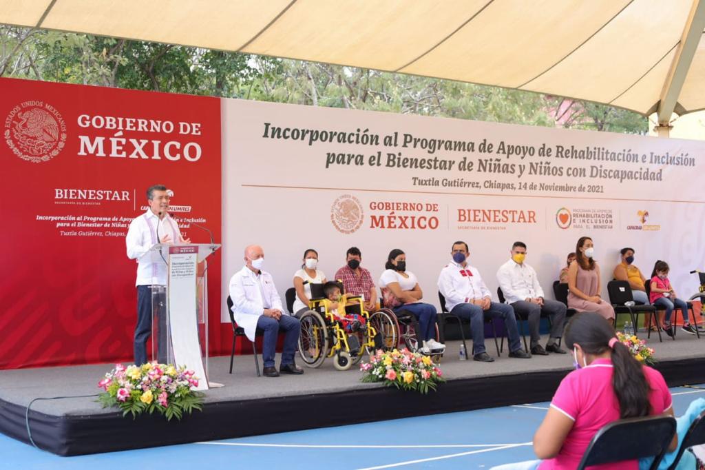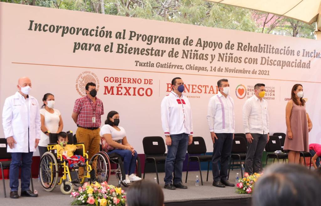 Los eventos realizados para poner en marcha el Programa de Apoyo de Rehabilitación e Inclusión para el Bienestar de Niñas y Niños con Discapacidad estuvieron encabezados en Chiapas por el gobernador Rutilio Escandón Cadenas, así como por el Delegado Estatal de Programas para el Desarrollo en la entidad, José Antonio Aguilar Castillejos.