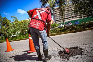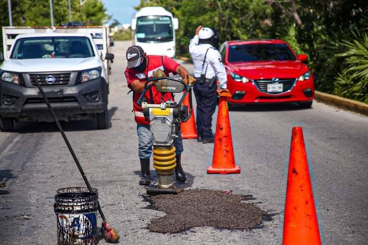 Fernando Bacelis Godoy, director de la dependencia en mención, explicó que, en coordinación con la dirección de Servicios Públicos, los trabajos de bacheo continúan con la finalidad de brindar tanto a visitantes, como a las familias isleñas, vías transitables.
