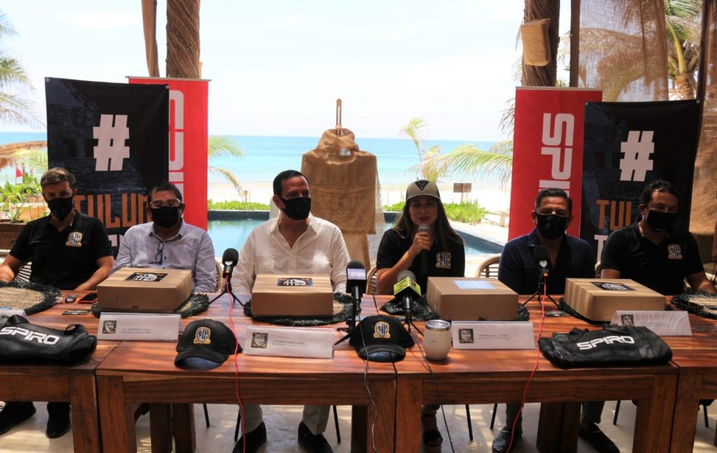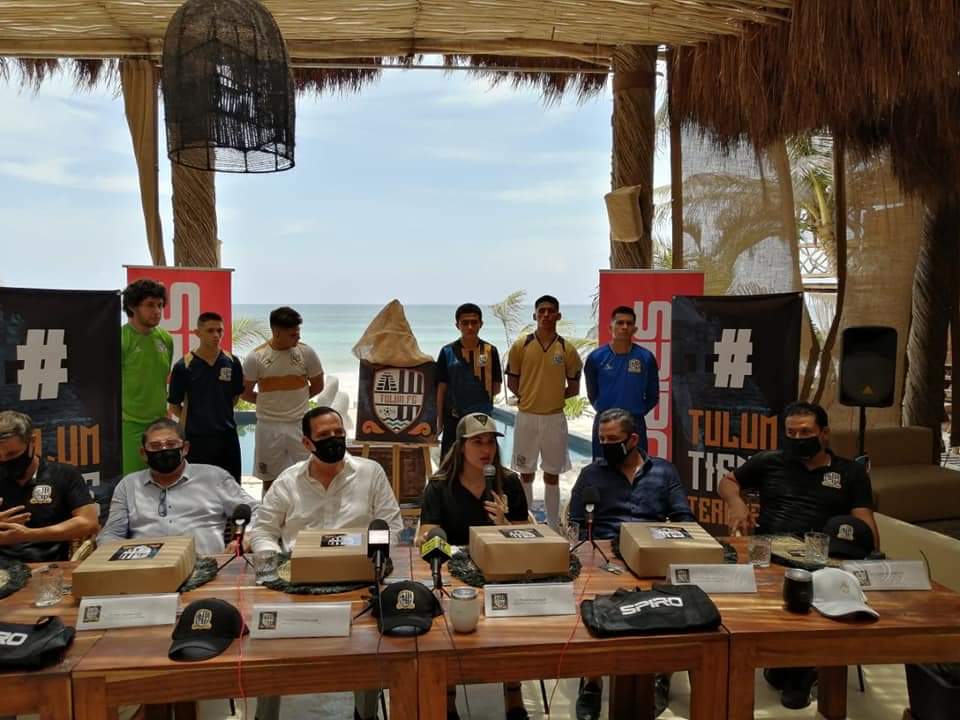 Tulum, Q. Roo, Lunes 17 de Agosto de 2020, poderycrítica.- Con invitados de lujo en las personas de José Vázquez Ávila y José Escobedo Corro, presidentes de la Liga Premier y la Liga Tercera División Profesional (TDP), respectivamente, Tulum FC se presentó en sociedad como el primer equipo en la historia del noveno municipio de Quintana Roo en rueda de prensa encabezada por la presidenta del club, Rifka Queruel Nussbaum.
