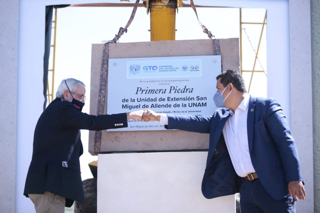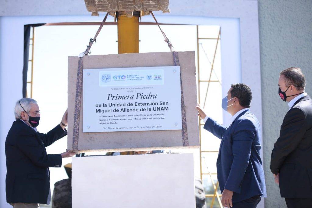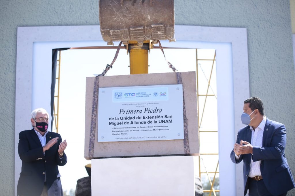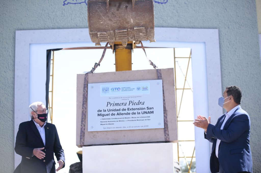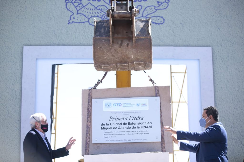 San Miguel de Allende; Gto. , Jueves 22 de Octubre de 2020, poderycrítica.- Guanajuato, con la colocación de la primera piedra de la construcción del plan maestro de la Unidad de Extensión de la Universidad Nacional Autónoma de México -UNAM- en San Miguel Allende, le da buenas noticias a México, dijo el Gobernador, Diego Sinhue Rodríguez Vallejo.