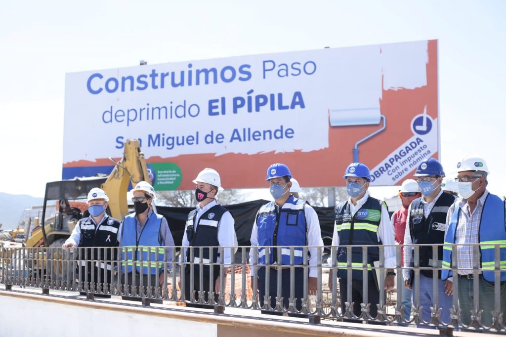 El Gobernador, Diego Sinhue Rodríguez Vallejo, el Secretario de Infraestructura, Conectividad y Movilidad, Tarcisio Rodríguez Martínez y el Alcalde de San Miguel de Allende, Luis Alberto Villarreal García, supervisaron de los trabajos de construcción del Paso Deprimido de la Glorieta “El Pípila”.