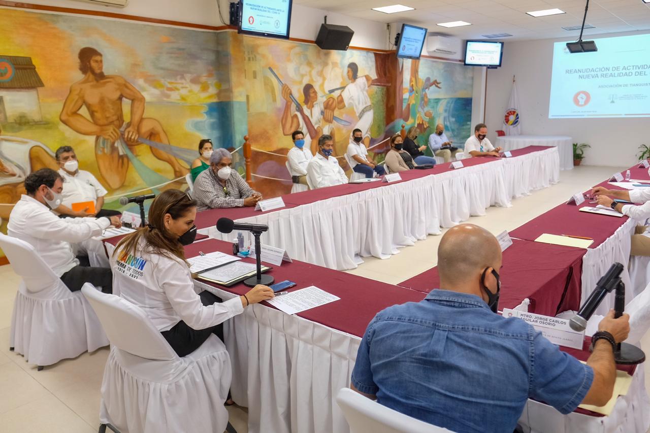 En esta reunión acompañaron a la Primera Autoridad Municipal el Secretario del Ayuntamiento, Jorge Aguilar Osorio; el regidor de la comisión de Comercio y Asuntos Agropecuarios, Humberto Aldana Navarro; el representante de la Unión de Tianguistas y Comerciantes Ambulantes, Melitón Ortega; de la Unión Autónoma de Ciudadanos Mayas A.C, Gerónimo Chan Mo; de la Confederación Autónoma de Trabajadores y Empleados de México, Yareri del Carmen Contreras, y el director de Comercio, Amilcar Israel García Lorenzo.