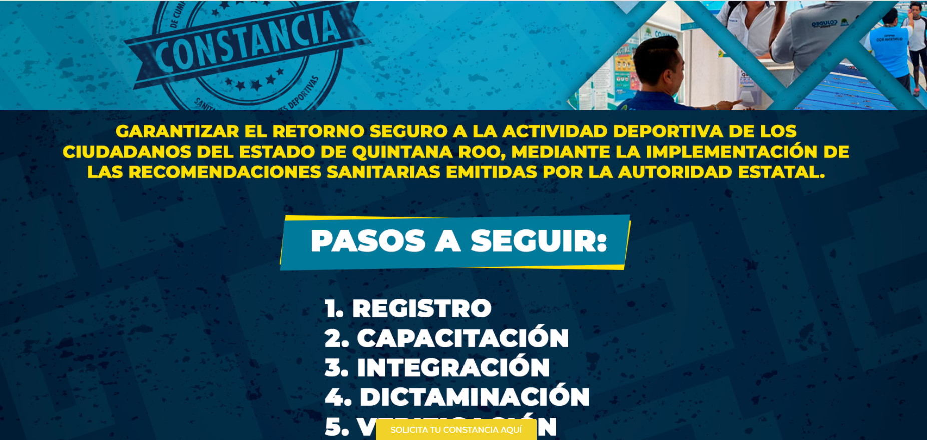 Asimismo, la titular del deporte en Cozumel, señaló que el proceso para obtener la constancia es: el registro, luego se llevará a cabo una capacitación, así como la integración de una carpeta de evidencias, después las autoridades correspondientes acudirán a los edificios para verificar que se cumplan con los protocolos sanitarios y posteriormente se hará entrega del documento.