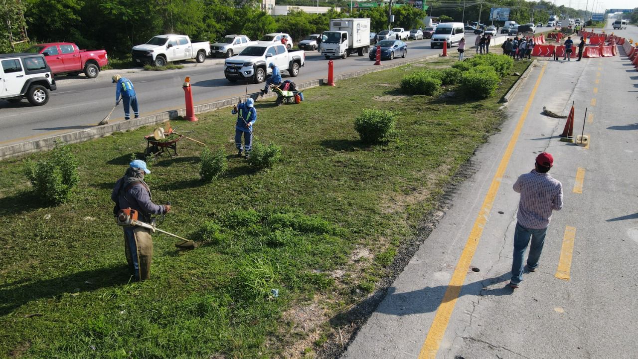 También se trabajará en el montaje de alumbrado suministrado por el municipio de Solidaridad, así como en la reposición de terracerías y relleno de zapatas en el área del viaducto elevado. Todos los trabajos concluirán la primera semana de octubre.