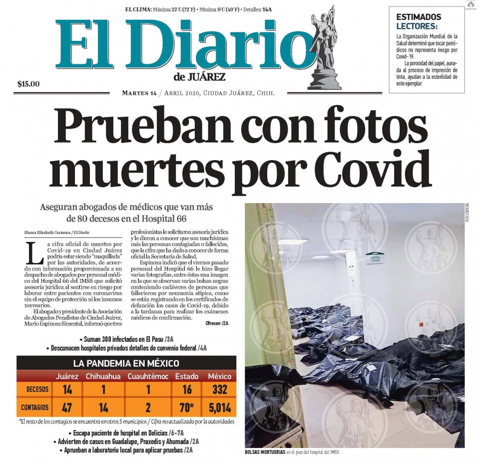 Ciudad de México , Jueves 16 de Abril de 2020, poderycrítica.- La Secretaría de Gobernación, a través de la Unidad de Normatividad de Medios de Comunicación de la Subsecretaría de Gobierno, ha determinado el inicio de un procedimiento administrativo sancionatorio contra El Diario de Juárez y El Diario de Chihuahua por la información falsa difundida en sus respectivas ediciones del 14 de abril de 2020.