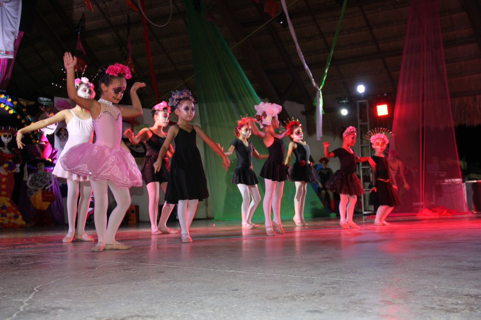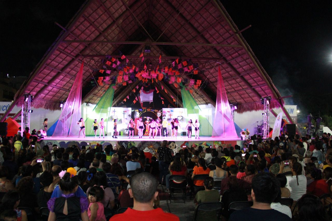En el Parque de las Palapas los asistentes y participantes, así como turistas nacionales e internacionales, disfrutaron de una exhibición de altares de muertos, gastronomía mexicana, bailables y musicales de diferentes géneros de grupos locales como “Acadance”, “Saint Denis”, “Danzales”, “Cancún Ballet Academy”, “Technique Dance Gasca”, en medio de un lindo ambiente familiar.