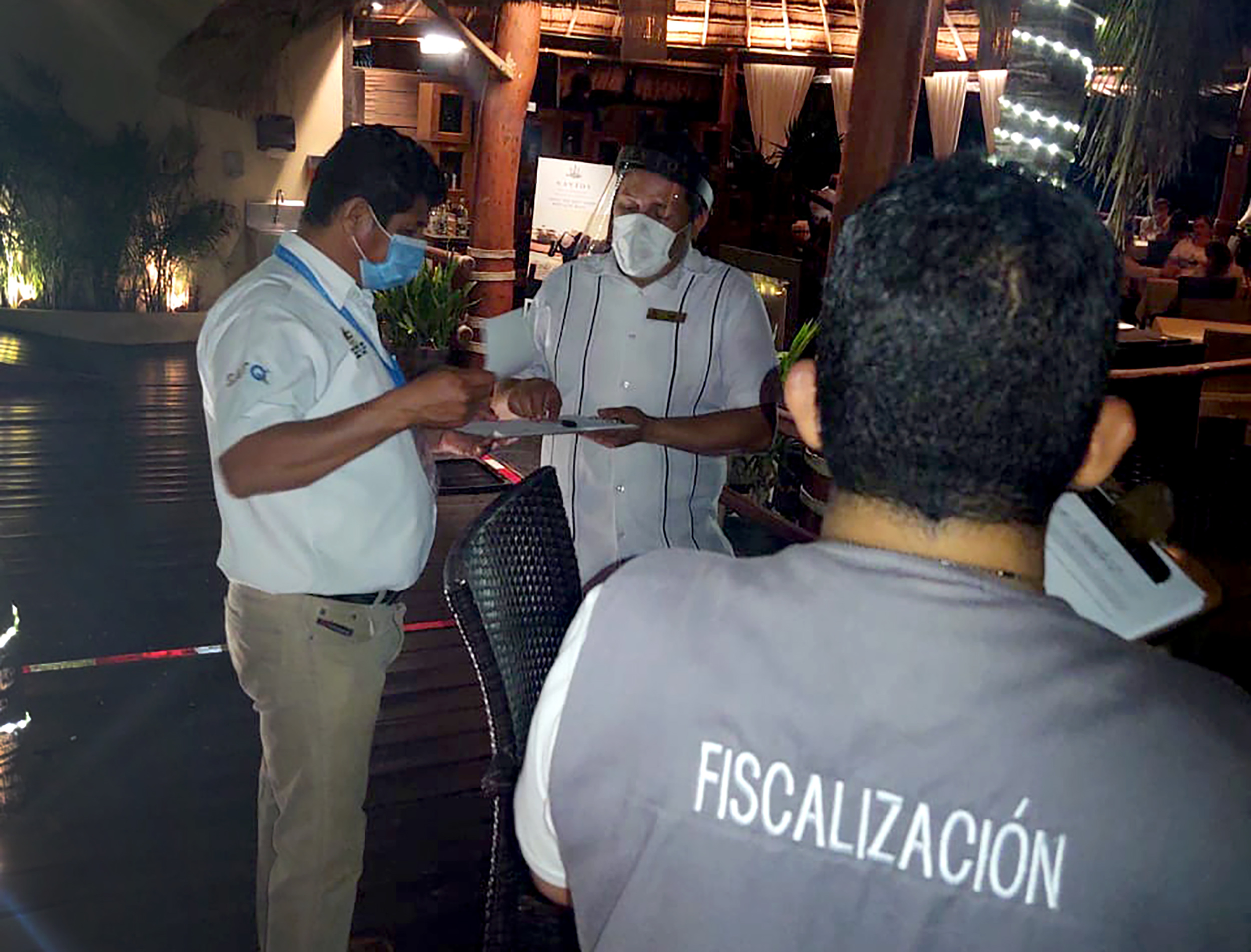 El Director de Fiscalización, Alberto Covarrubias Cortés, detalló que a través estos operativos de supervisión, se visitaron 40 negocios tanto en la Zona Hotelera como en el centro de la ciudad, invitando a los propietarios a que se respeten las medidas de salud establecidas conforme al semáforo estatal, recordando que está prohibido llevar a cabo eventos masivos que exceden el 60 por ciento de aforo.