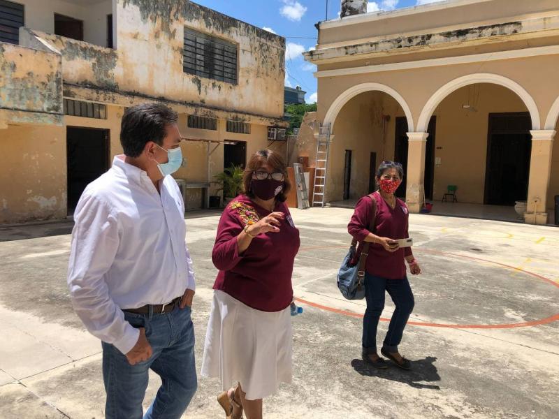 El titular de la Secretaría de Educación (Segey), Liborio Vidal Aguilar, recorrió el edificio, que tiene 114 años de historia al servicio de varias generaciones de estudiantes, para conocer qué trabajo se realizará, en coordinación con el Instituto para el Desarrollo y Certificación de la Infraestructura Física Educativa y Eléctrica de Yucatán (Idefeey).