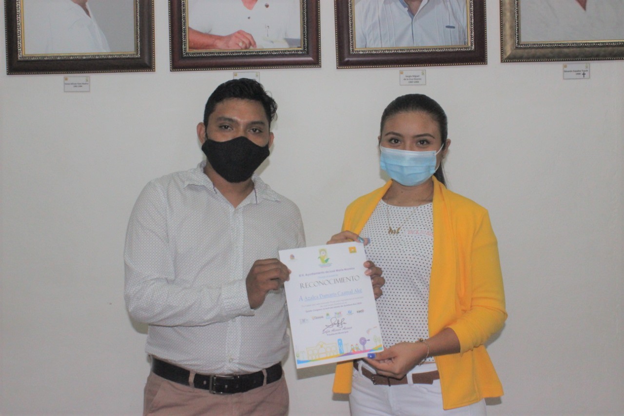 José María Morelos, Q. Roo, Sábado 05 de Diciembre de 2020, poderycrítica.- La administración que encabeza la Presidenta Municipal, Sofía Alcocer a través del Instituto de la Juventud Morelense entregó el reconocimiento a Azalea Damaris Caamal Aké, seleccionada titular para representar al municipio en el Quinto Congreso Juvenil 2020, que organiza el H. Congreso de Quintana Roo.