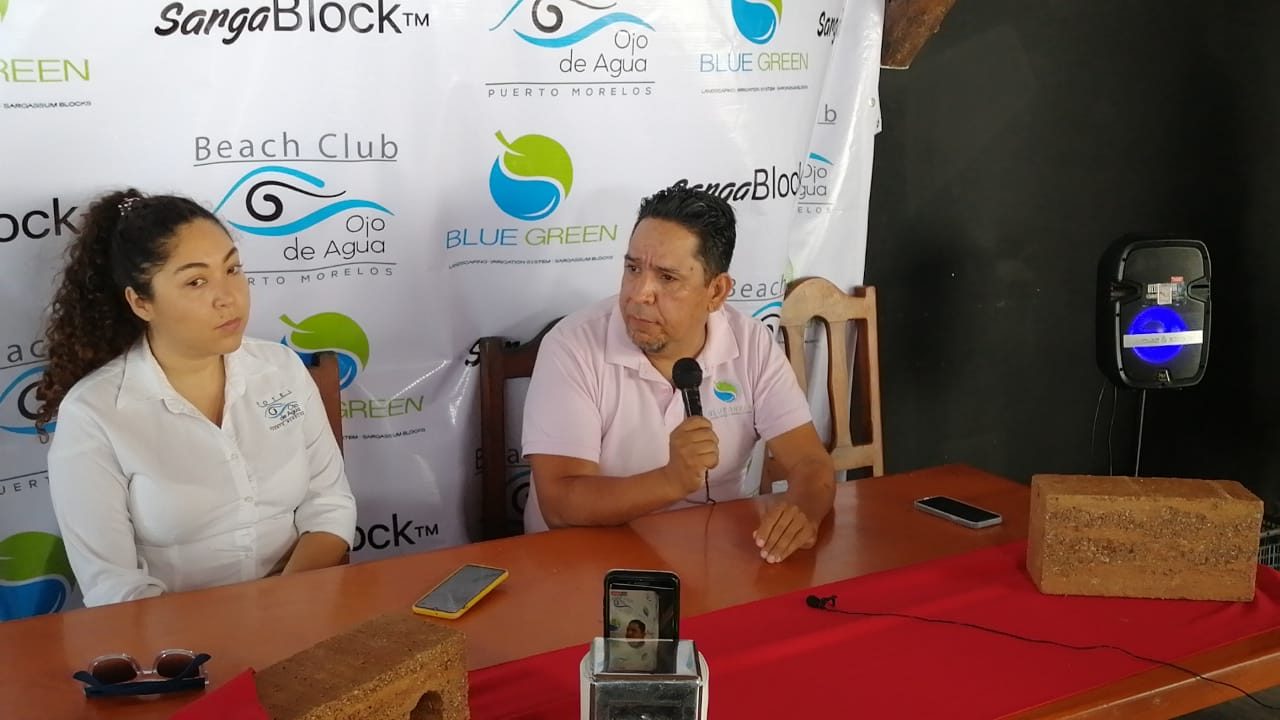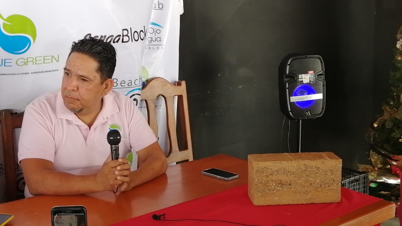 “Diario salimos a caminar a las playas y vemos todos los plásticos que hay, entonces los empezarnos a incluir, a triturar, empezamos a hacer fórmulas”, dijo Omar Vázquez, creador de los bloques de sargazo.