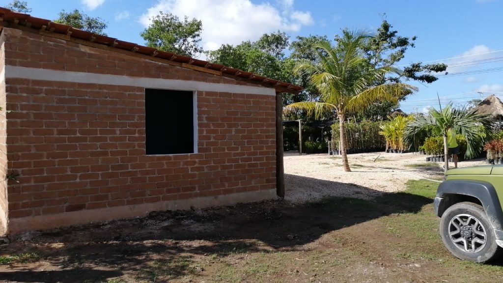 En cada casa fabricada con bloques de sargazo por Omar Vázquez se emplean 20 toneladas de ese residuo marino; la primera vivienda de este tipo fue fabricada en su vivero en el 2019.