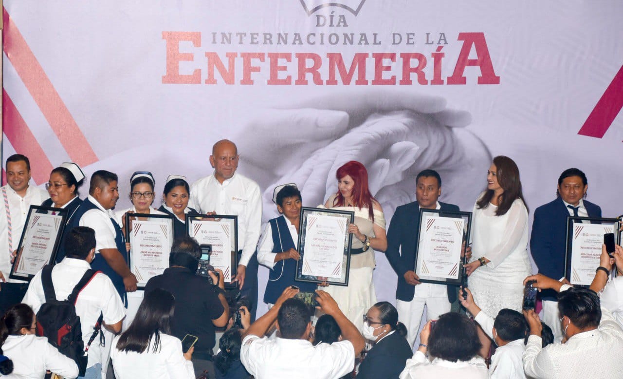 «Todas y todos ustedes merecen el más amplio reconocimiento del gobierno, pero sobre todo de la sociedad a la que ejemplarmente sirven, sin descanso, sin tregua, con pasión, por vocación y con orgullo», dijo Montejo León a todas y todos los trabajadores del sector Salud, en especial al personal de enfermería.