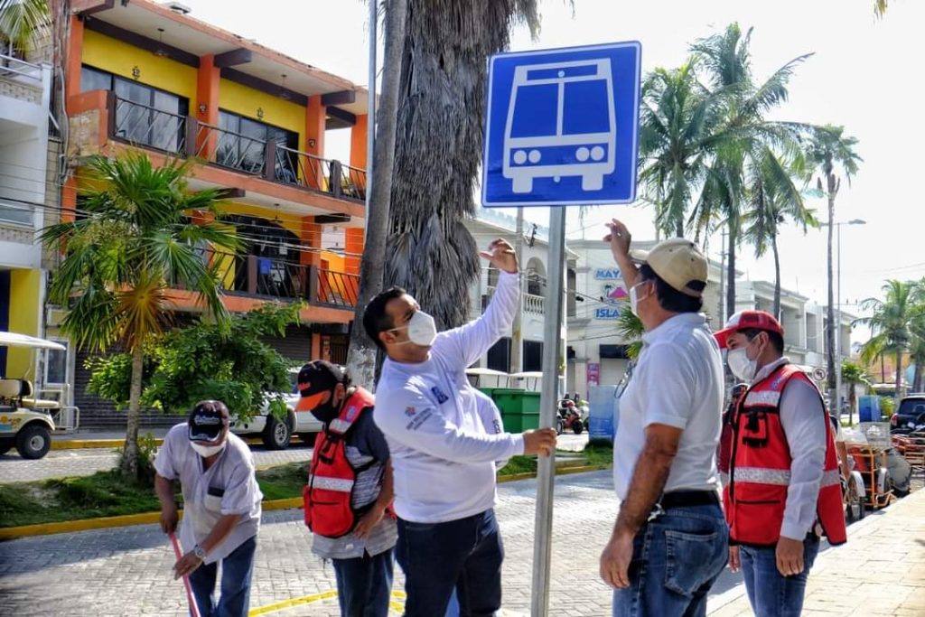 Fernández Martínez señaló que es de suma importancia que la población esté segura al momento de subir y bajar del transporte público para así evitar accidentes, aglomeraciones y congestionamientos vehiculares, por lo que se tiene contemplados 11 paraderos en la ínsula, 5 en la zona Centro y 6 distribuidos estratégicamente en las colonias populares.