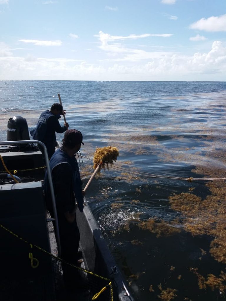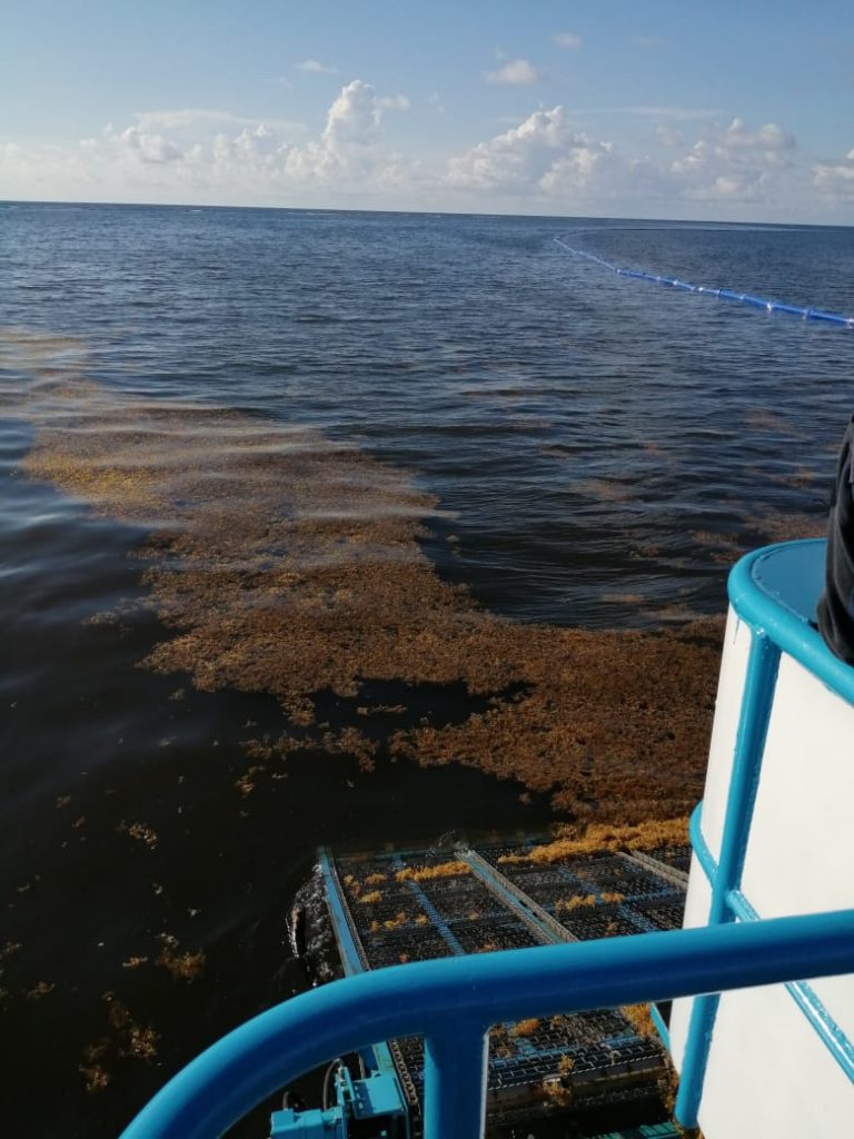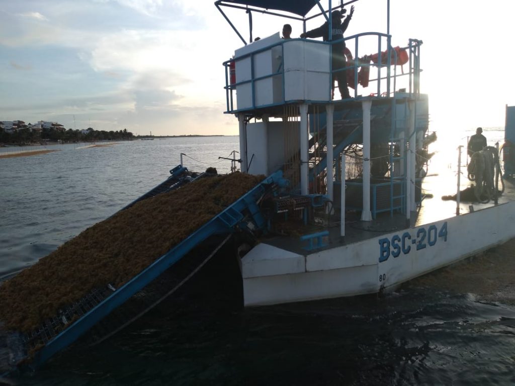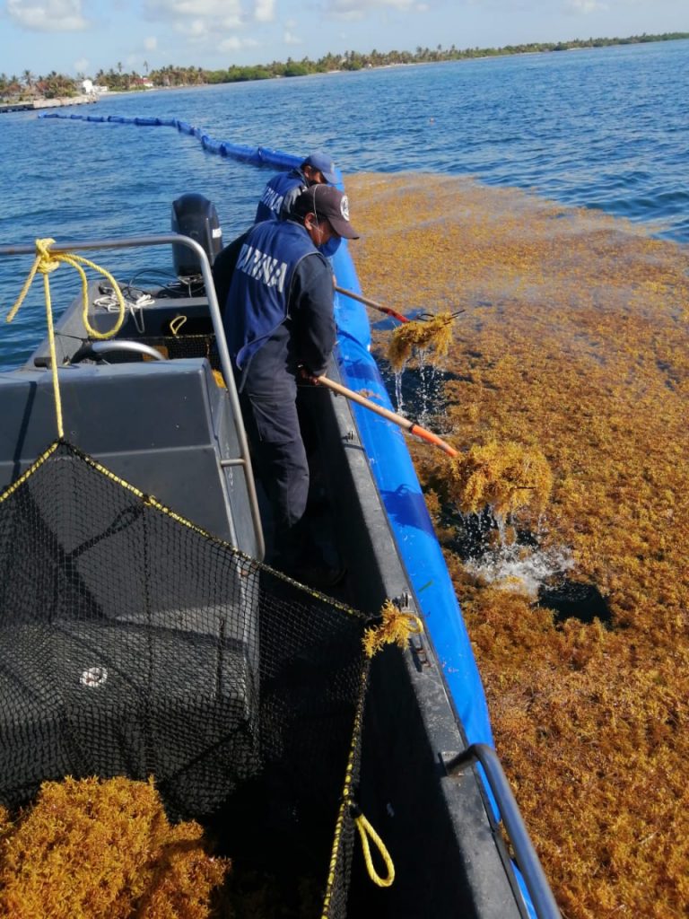 En este sentido, esta Institución continúa con el despliegue operativo de una aeronave, 26 embarcaciones de las cuales ocho son sargaceras y cuatro barredoras, así como de 60 elementos navales, quienes con cuatro mil 252 metros de barrera, apoyan en la recolección del sargazo en las diferentes playas afectadas de los municipios de Solidaridad, Benito Juárez, Puerto Morelos, Tulum, Cozumel, Isla Mujeres y Othón P. Blanco.