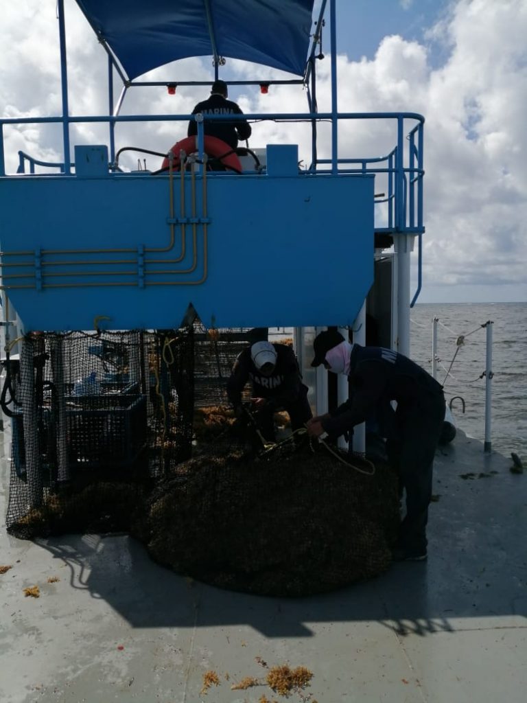 Cabe hacer mención que de los buques que dispone la Armada de México, el Sargacero Oceánico ARM “NATANS” (BSO-101) continúa en rehabilitación con un avance del 99%, realizándose actualmente pruebas en la mar al término de sus reparaciones a fin de verificar su óptimo funcionamiento para que próximamente se incorpore a los trabajos de recolección de sargazo.