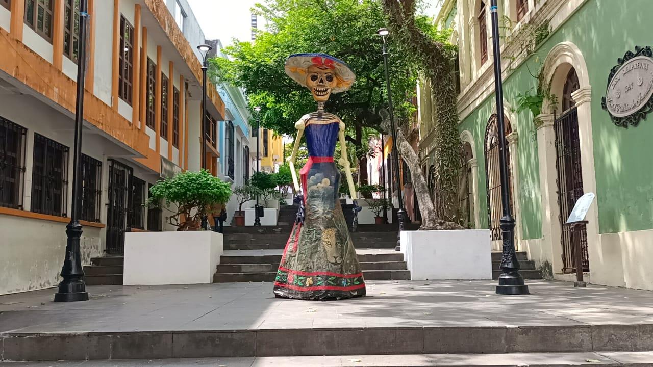 Además de las catrinas, el ayuntamiento de Centro ha embellecido las calles Miguel Lerdo de Tejada, Benito Juárez e Ignacio Aldama con hileras de papel picado.
