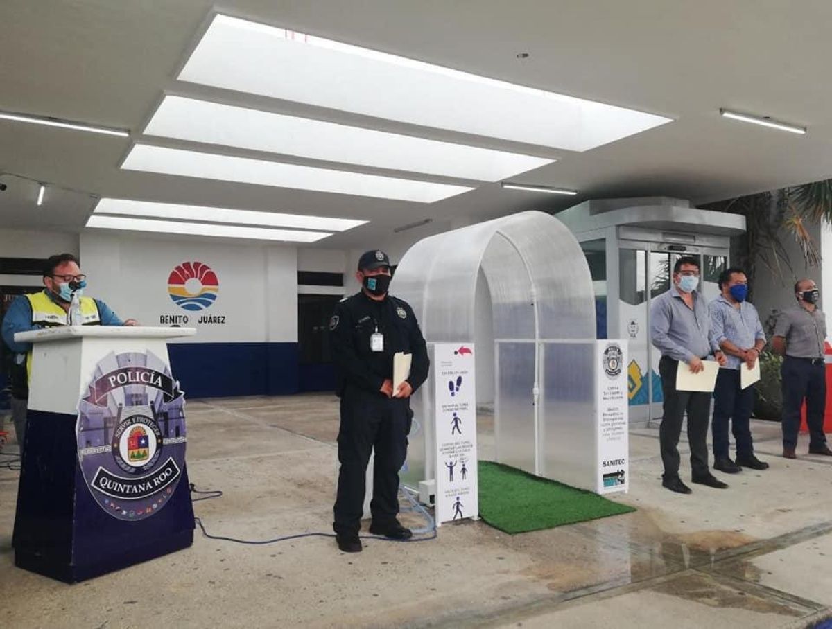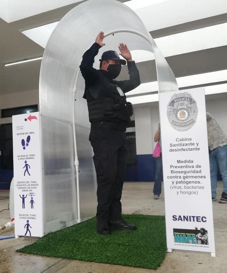 Q, Roo, 12 mayo 2020, Poder&Crítica.- La Policía Quintana Roo de Benito Juárez recibió  un túnel de sanitización para el personal de la Policía Turística.