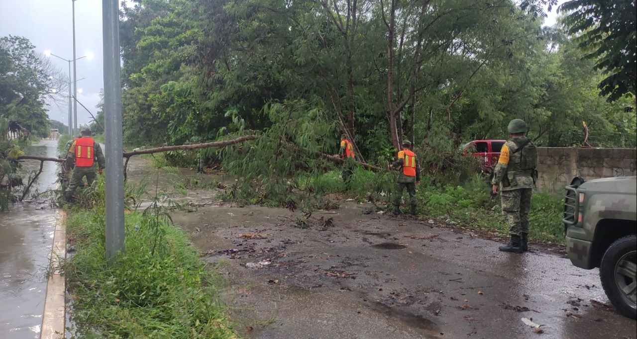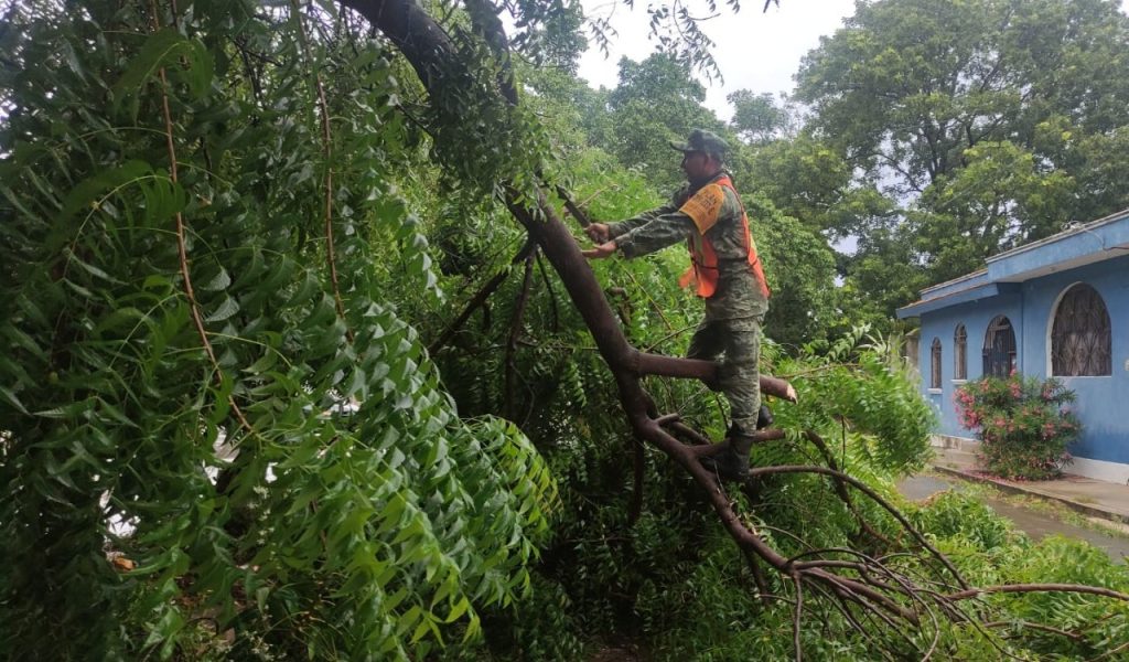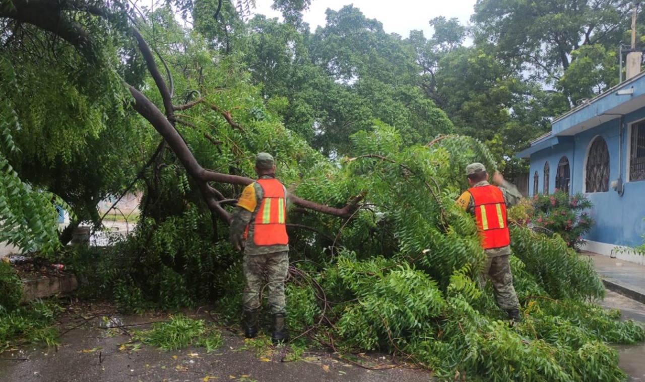 Desde las primeras horas del día apoya con el retiro de árboles caídos, en la calle Flor de Mayo esquina con Jazmines de la Colonia Miraflores, y Avenida Enrique Barocio esquina con calle 12, de la colonia Guadalupe Victoria de esta ciudad; asimismo, se continúa efectuando patrullajes para brindar el apoyo donde se requiera, todo por el bien del pueblo.