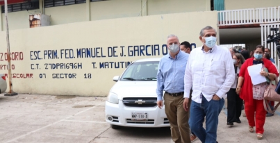 En presencia del secretario de Ordenamiento Territorial y Obras Públicas (SOTOP), Luis Romeo Gurría Gurría, señaló que si las condiciones sanitarias lo permiten, en el próximo ciclo escolar que arranca en agosto, los alumnos estarían estrenando escuela nueva.