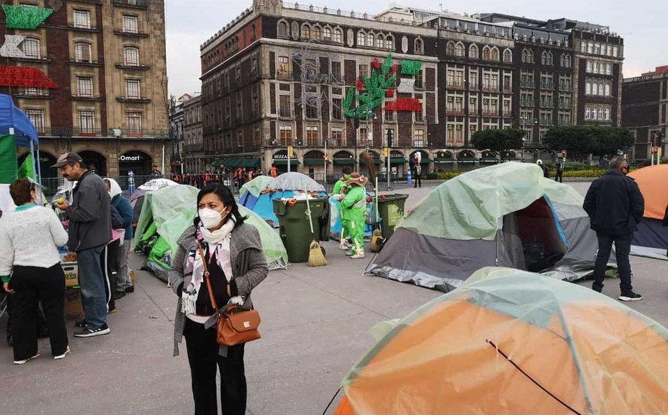 Con un equipo de sonido y megáfonos apuntando hacia Palacio Nacional, lanzaron consignas desde muy temprano en contra del presidente Andrés Manuel López Obrador, a quien le exigen su renuncia.