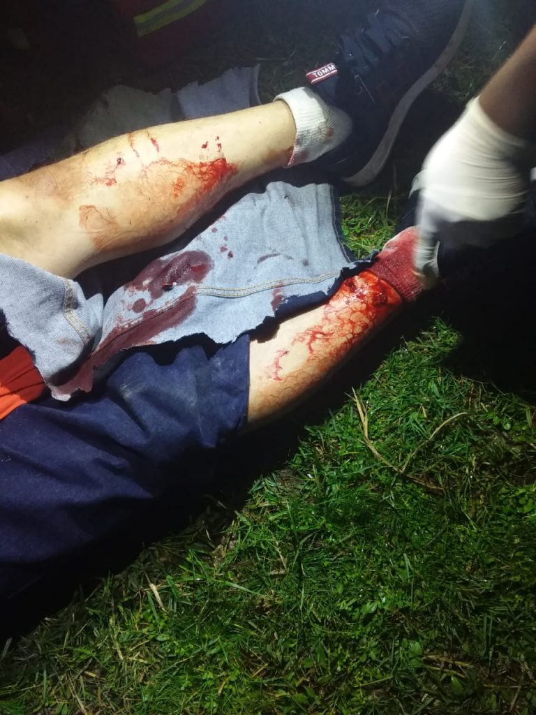 Al arribar al sitio encontraron a dos personas heridas con proyectiles de arma de fuego, uno de ellos de nombre Oswaldo con dos impactos en los pies y el segundo de nombre Fabián con una herida en el abdomen y un rozón en el brazo.