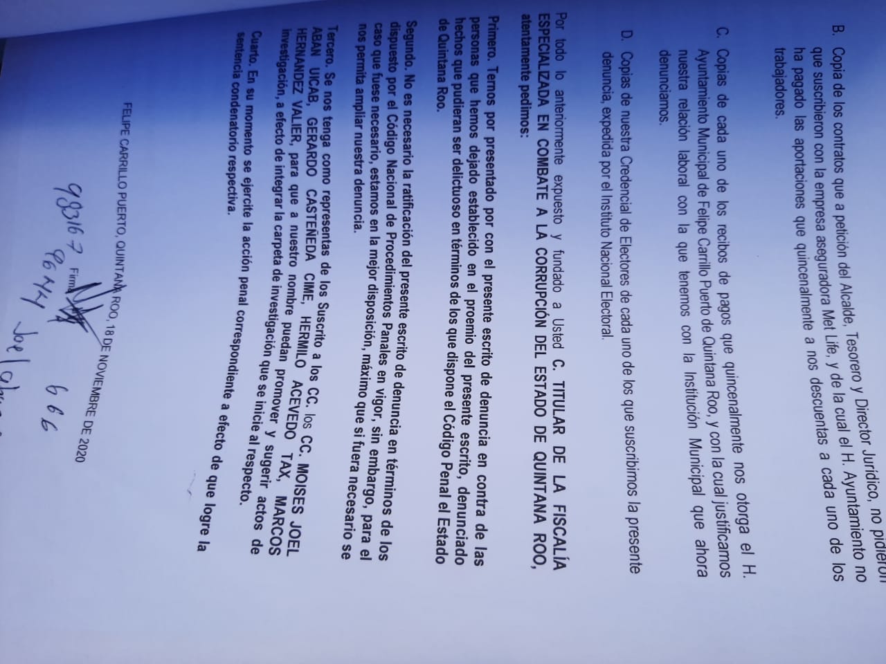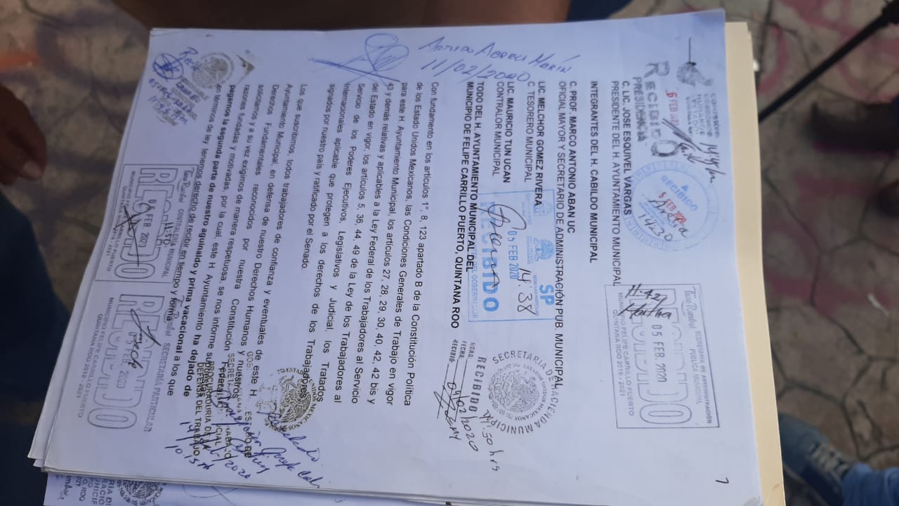 Señaló que han recurrido a la Secretaría Particular de la Presidencia Municipal, Contraloría Interna, Tesorería y la Comisión de Derechos Humanos del Estado de Quintana Roo (CDHEQROO), pero no ha habido respuesta favorable. De allí la denuncia ante la FECC interpuesta este lunes.