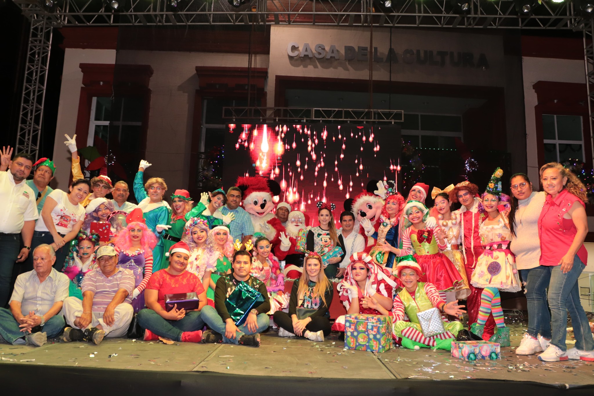 El bello espectáculo de carros alegóricos bellamente decorados con motivos y música navideña, repartiendo dulces y regalos a los niños, recorrieron las principales calles de esta ciudad, durante un desfile donde se apreció a Santa Claus, renos, muñecos de nieve, duendecitos y pinos, que causaron una gran impresión entre los espectadores.