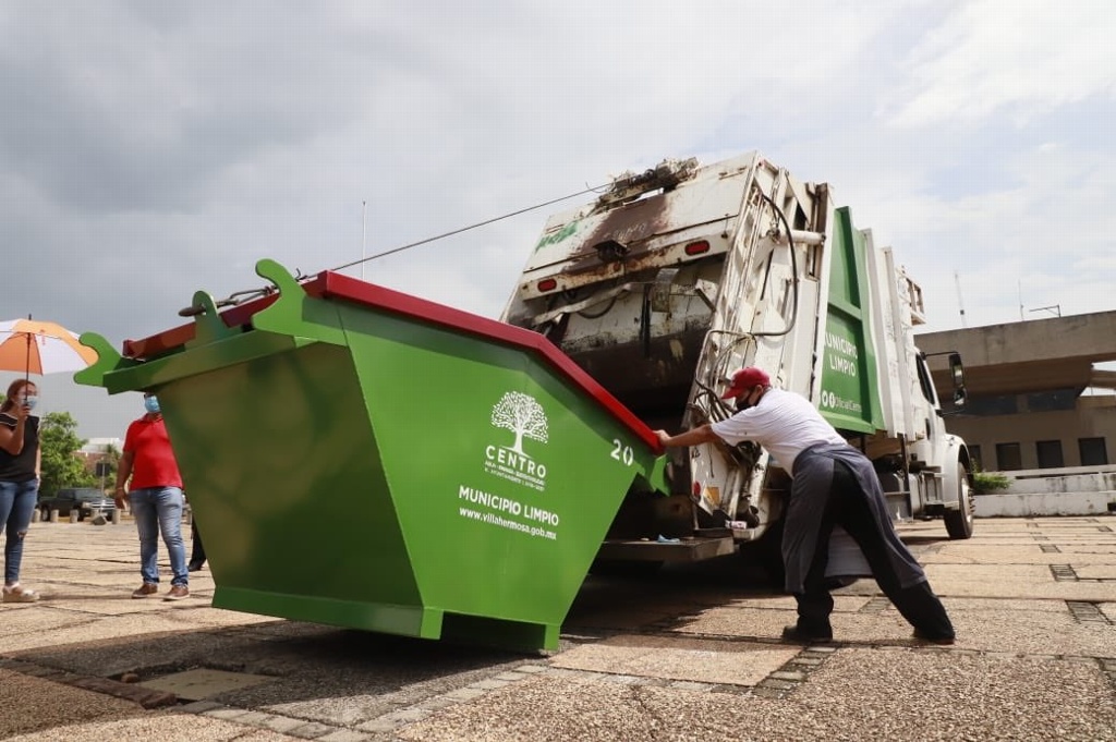 Tabasco, 03 agosto; poderycritica.-El Ayuntamiento de Centro realizó la entrega de los primeros 20 contenedores de basura para reemplazar las unidades viejas de conjuntos habitacionales.