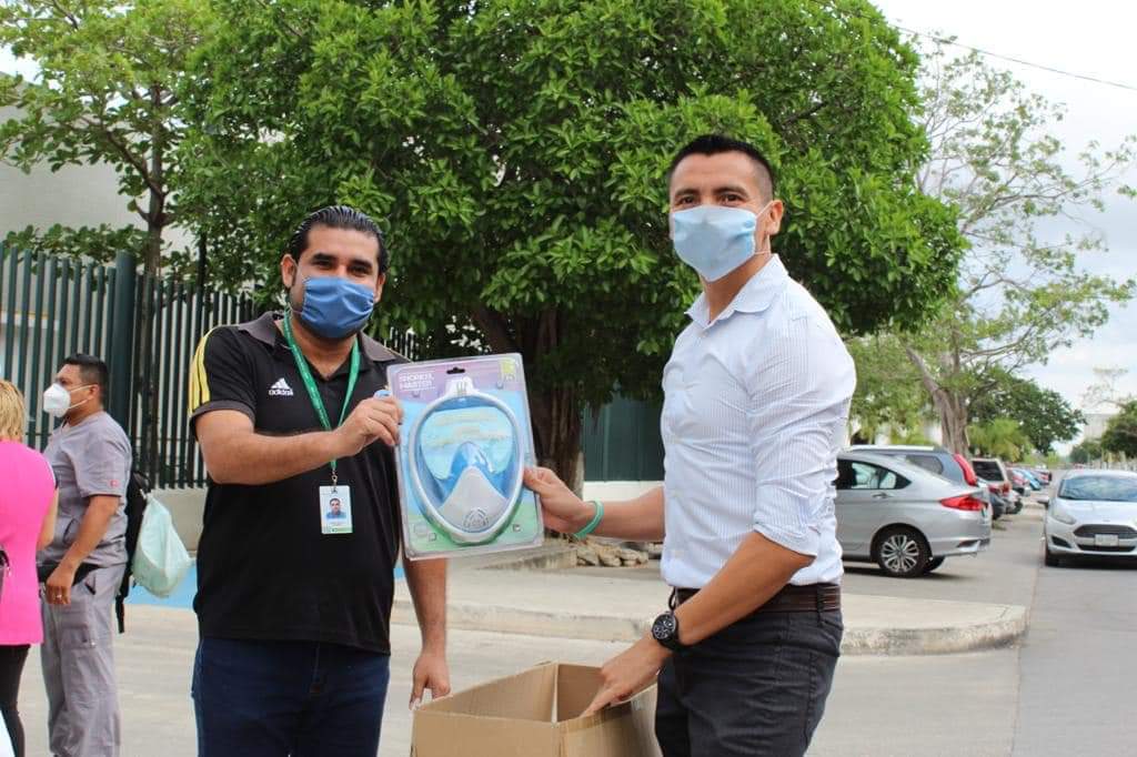 Esto se sumó a lo entregado al *Hospital General, consistente en 40 caretas, 38 Cñcubrebocas N95, 45 adaptadores y gel antibacterial.