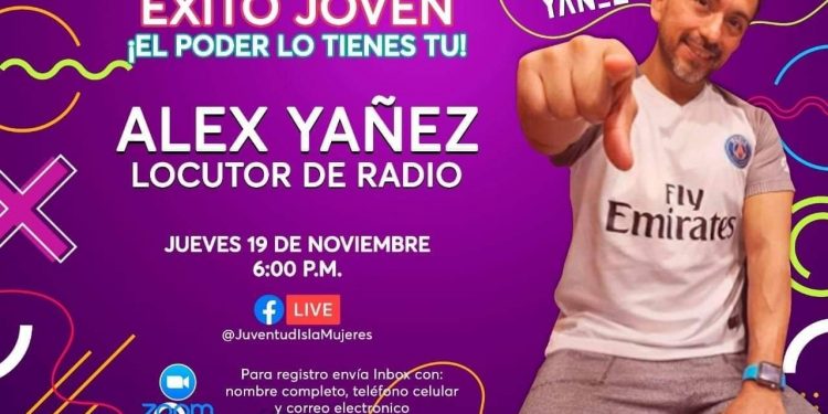 Isla Mujeres, Q. Roo, Miércoles 18 de Noviembre del 2020, poderycrítica.- El gobierno municipal presidido por Juan Carrillo Soberanis a través de la dirección de Juventud, Cultura y Deporte, invita a toda la población isleña a participar en la videoconferencia “Éxito Joven” El poder lo tienes tú, conducido por el locutor de radio del “Desmorning Show” Alex Yañez.