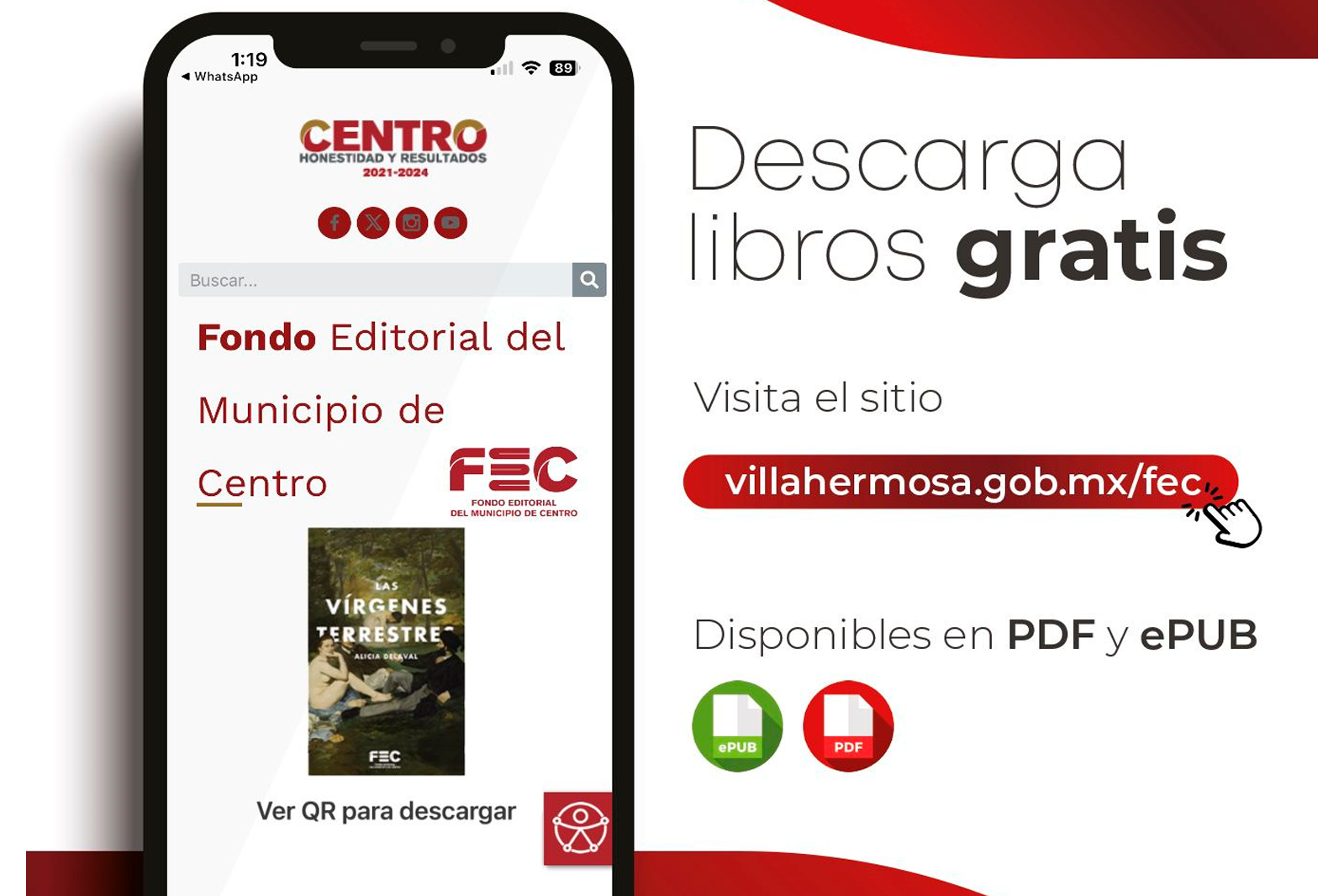 PODER Y CRÍTICA | REDACCIÓN | Como parte de la importancia y trascendencia de fomentar la lectura e impulsar la inclusión digital, el Gobierno de Centro, que preside la alcaldesa Aura Medina Cano, puso a disposición de los ciudadanos la descarga gratuita de libros editados por el Fondo Editorial Municipal de Centro (FEC).